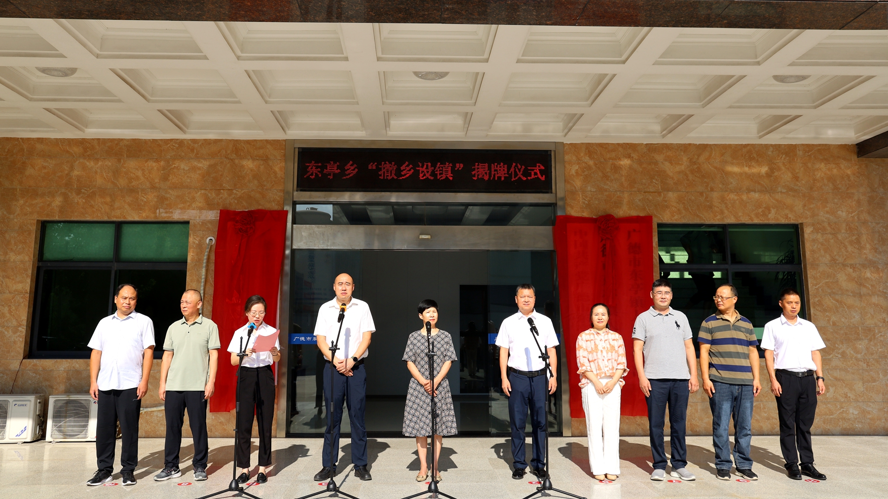8月21日上午,东亭镇举行撤乡设镇揭牌仪式,市政协主席刘群和东亭镇党委主要负责同志共同为东亭镇党委、人大、政府、纪委(监委)、武装部揭牌。